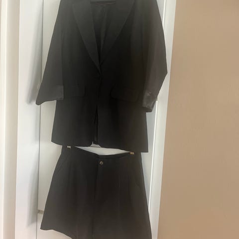 Sort kort bolero jakke i str M med en enkelt knap foran. Har korte ærmer og er målt med målebånd, så du kan se længde og bredde på billederne.