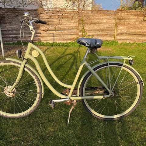 Batavus 1760 hybridcykel med 28" hjul og unisex stel i str M. Har bagagebærer, skærme, kædeskærm og håndbremser foran og bagpå.
