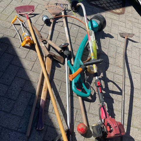 1. Den lange grønne er både buskrydder og kan laves til hækklipper. - pris: 500 kr.