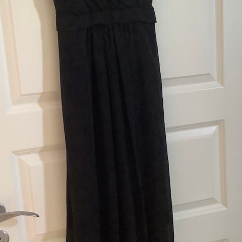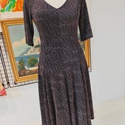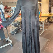 Langærmet kjole i sort med geometrisk mønster i grånuancer/sølv og bælte med frynser, ideel til festlige anledninger og hverdagsbrug.- Bemærk at mail, chat og beskeder ikke besvares, og varen skal købes på knappen "Gå til varen". Efter reservering af varen har du 10 dage til at afhente den i den butik, varen er på lager i.