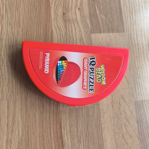 Lille IQ-puslespil i træ med kugler, der skal samles til en pyramide. Fin som lille hjernegymnastik eller gave til én der kan lide logikspil.