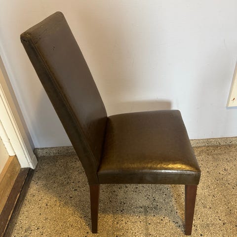 Behagelige og robuste skovby stole 2 stk. ægte lædersæder i brun, ben af træ.