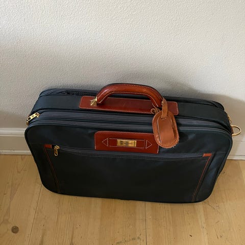 Sælger denne utroligt velholdte garment bag fra italienske Moalli. Tasken er fra omkring 1990 og udført i klassisk monogram-canvas med detaljer i ægte kernelæder.