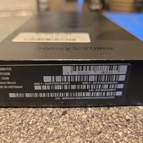 Sælger min Samsung Galaxy S22 Ultra i farven Phantom Black (sort), 128 GB.