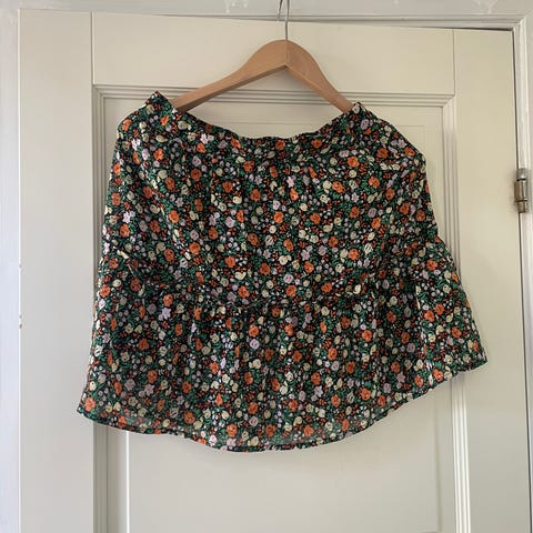 Nederdelen har oprindeligt været en kjole i str S/M, hvor overdelen nu er klippet af, og der så er syet et elastik i livet. Ellers er der ikke ændret ved den. Falder super flot, og er helt perfekt til de lune sommerdage ☀️ eller her i foråret med en strik til.