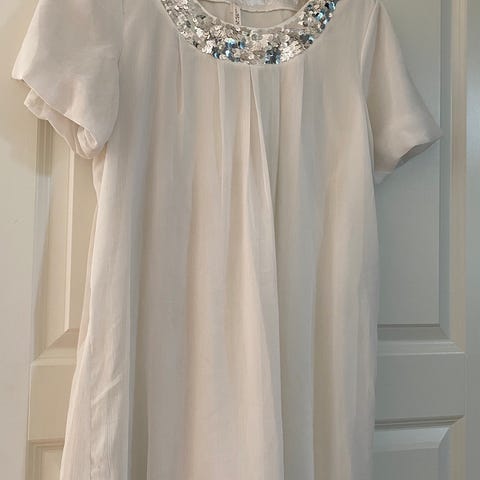 Kjolen er brugt en enkelt gang, men har en lille skade foran (se billede).