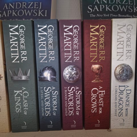 Kun de to første bøger er læst og har lidt rygmærker, resten er urørte. Bøgerne er på engelsk.
