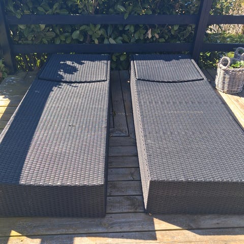 2 træ solsenge med hynder til terrasse eller have