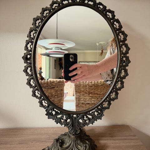 Smukt antikt bordspejl i rigtig flot stand H41cm x B25cm mp 500kr afhentes i 8570 Trustrup eller sendes for 54kr