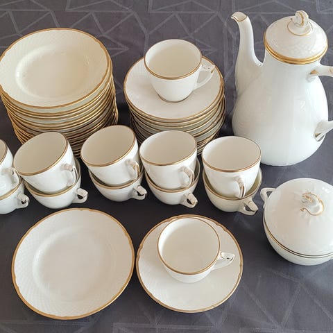 Porcelæn, Kobber, tallerkener, sukkerskål, Årestrup, Bing & Grøndahl stellet Aarestrup B&G