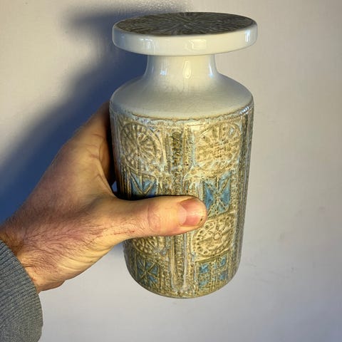 Flot vase fra Palhus med struktur i overfladen og smuk, lysegrøn glasur.