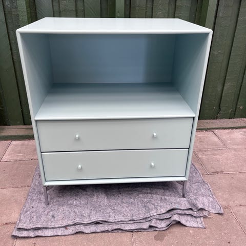 Montana reol i rimelig god stand, der er lidt skrammer. Farven er “01 White”.