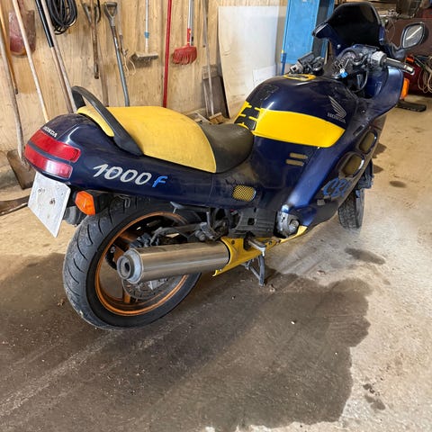 Motorcyklen har stået stille, men med frisk benzin og et batteri skulle den gerne kunne starte. Sælges derfor som et godt udgangspunkt for den rette entusiast.
