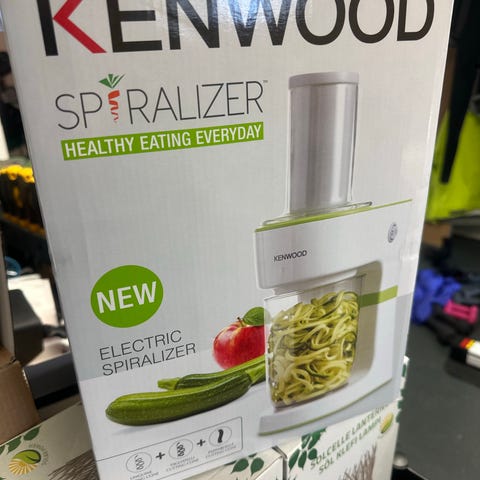 Kenwood elektrisk spiral skræller , lave spaghetti af grønsager farven er i hvid og grøn med gennemsigtig beholder. Har ledning med stik og flere udskiftelige spiral skæller….