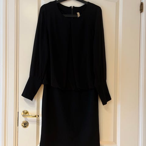 Sort fest/cocktail kjole fra Part Two i str 42 i glat stof. Har lange ærmer og lille åbning ved halsen.