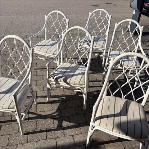 3 stole med hynder og 1 bord. Den ene stol er lidt mørkere da den ikke har stået så meget i solen som de andre. Se alle billeder. Skal afhentes i Næstved.