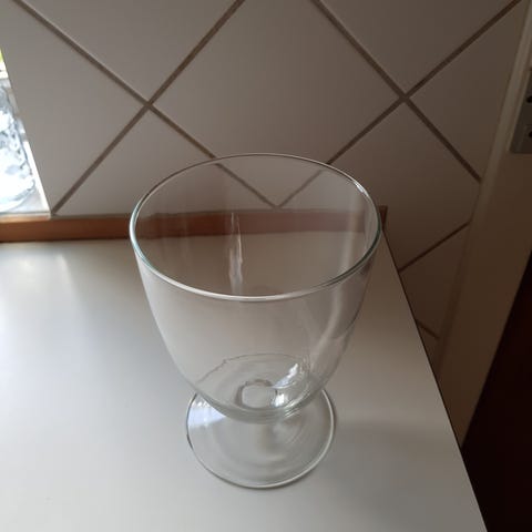 Fin glasvase. Ca. 40 cm høj.Enkel form, god til blomster eller som dekoration på bord eller hylde.
