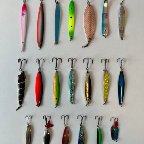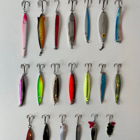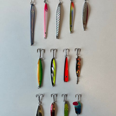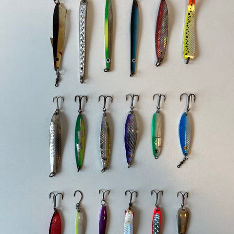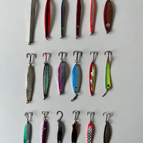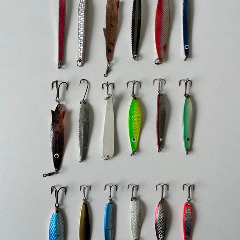 13 helt nye og ubrugte blink. Et bredt udvalg af velkendte mærker i forskellige størrelser og med forskellige farver, vægte og egenskaber i vandet: