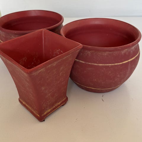 Urtepotteskjuler med julemotiv (en julepakke) - højde 6,5 cm, diameter bund 5,5 cm: 5 kr.