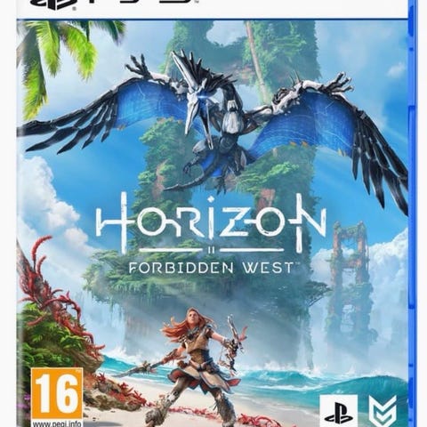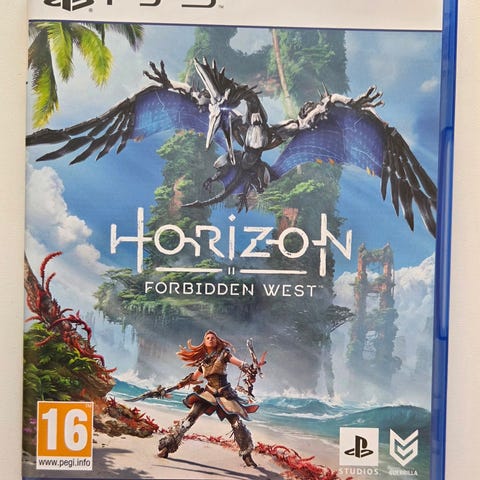 Sælger Horizon Forbidden West til PlayStation 5 på fysisk disc. Originalt PS5-cover medfølger som på billederne.
