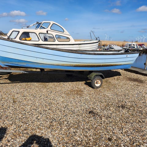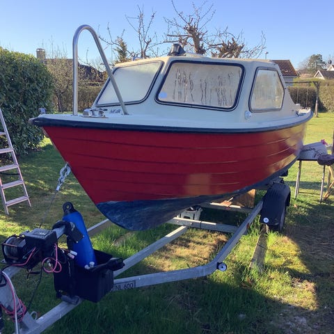Kabinebåd Ryds 16 fod med styrepult, forrude og siddepladser i stævnen.og har ræling og håndtag på taget.mangler at blive malet under bundlinjen kan eventuelt leveres på Sjælland mvh Mogens