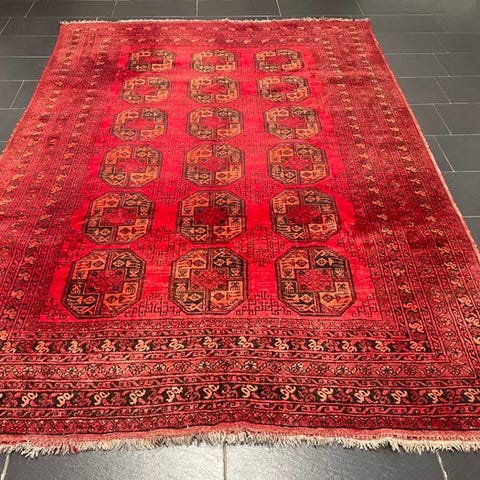 Oprindelsesland Afghanistan, model Afghan art deco, uld på uld, målene 250 cm x 160 cm, i god generel stand. Klik på den blå "gå til varen" knap, for at købe eller byde på denne vare. Den samlede pris vil blive vist inden du afgiver dit bud.