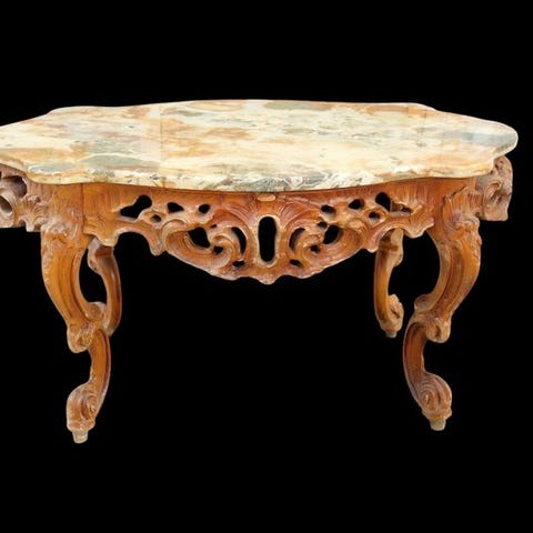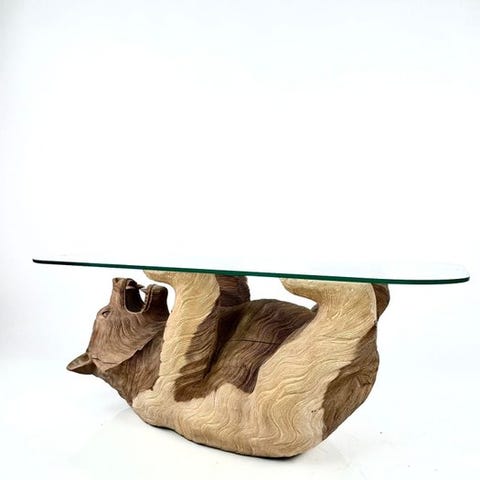 Håndlavet sofabord i massiv teaktræ fra Italien med en antropomorf skulptural base, dimensioner 100 x 50 x 48 cm, i fremragende stand. Klik på den blå "gå til varen" knap, for at købe eller byde på denne vare. Den samlede pris vil blive vist inden du afgiver dit bud.