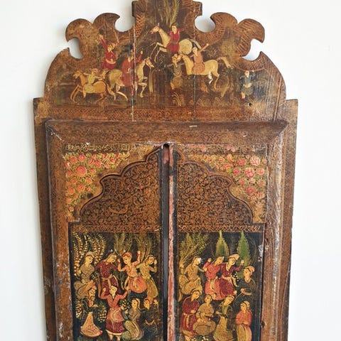 Kinesisk træudskåret og polykrom vindue med tre dignitarer, Qing-dynastiet (ca. 1750–1800), mål 40 × 33 × 3,3 cm, oprindelse Kina, titel: Ventana china. S.XVIII, tilstand: acceptabel med kraftigt brug og mulige mindre mangler. Klik på den blå "gå til varen" knap, for at købe eller byde på denne vare. Den samlede pris vil blive vist inden du afgiver dit bud.