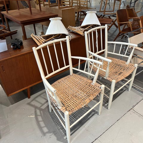 Richardson Brothers lænestole, sæt af to, fra 1960–1970 i Nederlandene, af træ og rotting, målene højde 98 cm, bredde 47 cm, dybde 43 cm, i god stand med mindre brugsspor. Klik på den blå "gå til varen" knap, for at købe eller byde på denne vare. Den samlede pris vil blive vist inden du afgiver dit bud.