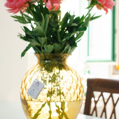 Vintage bordlampe fra 1960’erne fra Jablonec Glassworks (Tjekkiet) med håndlavet amber glas-skærm og messingfod, 22,5 cm høj, 22,5 cm bred, 22,5 cm dyb, E14 LED/ glødelampe, fremstår som ny. Klik på den blå "gå til varen" knap, for at købe eller byde på denne vare. Den samlede pris vil blive vist inden du afgiver dit bud.