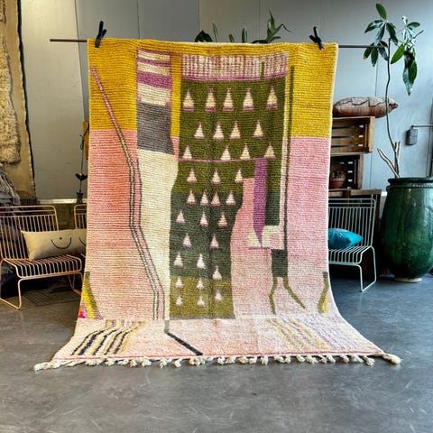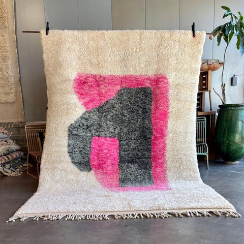 Autentisk nyt håndlavet marokkansk Berber-tæppe, håndvævet i Det Midt-Atlas i Marokko ved hjælp af traditionelle teknikker, der er videregivet gennem generationer. Dette tæppe er fremstillet af kvalitetsnaturuld, kendt for sin enestående blødhed, tæthe og holdbarhed.