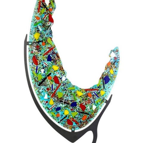 Skulptur i gennemfarvet glas, unik emaljedekor,