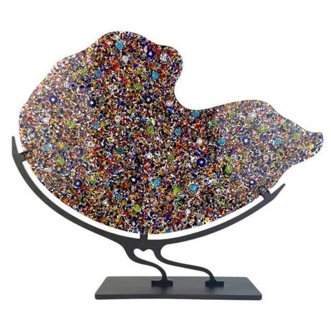 Vedhængets dekor er rig og harmonisk, med et elegant millefiori-mønster i intense og dybe farver, der kan fange lyset og fremhæve hver detalje. Hver kreation er unik og ikke-kopierbar, frugt af den venetianske glasmesterkunst.