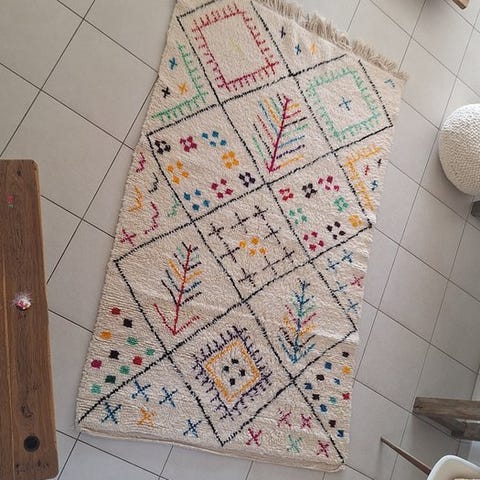 Ny håndvævet marokkansk Berber-tæppe med abstrakte symboler – moderne design ...