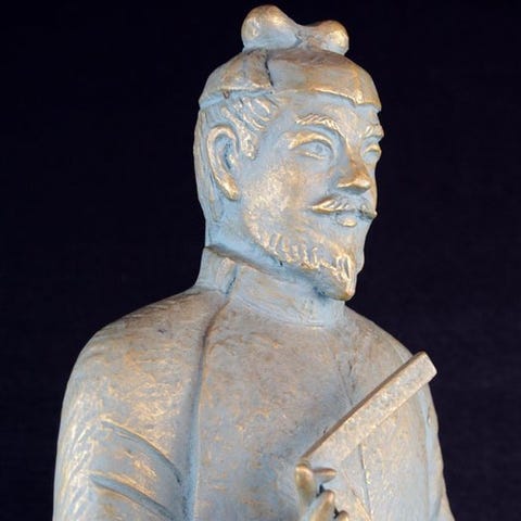 Håndskåret Okina Noh-træskulptur af Ikeda Shuhō (池田秀鳳), polychrom og forgyldt med en vifte, i god stand og håndsigneret af kunstneren, med sin originale signerede træopbevaringsboks, en foldevifte, en kunstnerbiografi og et 32-siders forklaringshæfte; ca. mål H 33,5 cm B 30,8 cm D 12,3 cm; vægt 2880 g; oprindelse Japan. Klik på den blå "gå til varen" knap, for at købe eller byde på denne vare. Den samlede pris vil blive vist inden du afgiver dit bud.