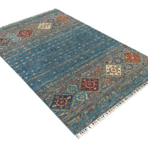 Dette tæppe er et traditionelt håndknyttet mesterværk, hvor hver knude sys ind i tæppe-strukturen med stor omhu og enkeltvis.