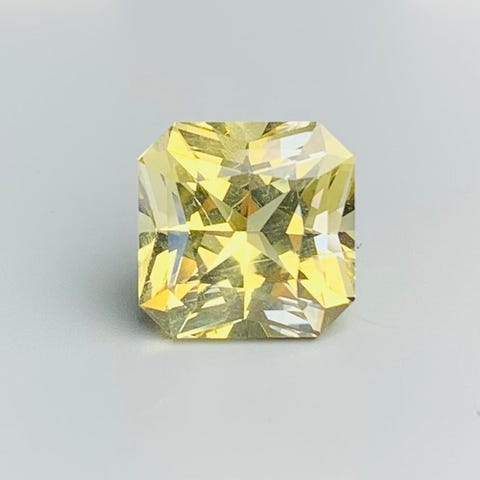 Radiant-skåret diamant med en magnifik grøn og gul nuance, stærkt mættet.