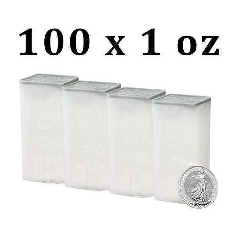 500 x 1 oz £2 GBP UK Silver Britannia Coin (Tilbage-dateret) (i rør)