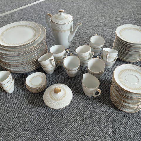 - 12 kaffekopper med tilhørende tallerkener