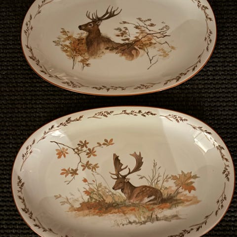 Smukt jagt-/vildtjagtservies i Limoges, Frankrig, autentisk - fransk porcelæn.