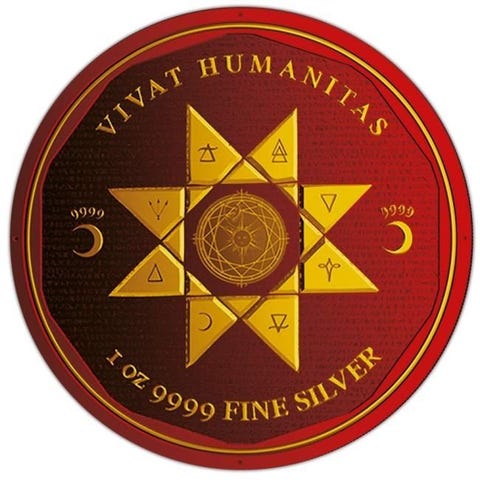 2022 1 oz $5 NZD Tokelau Silver Equilibrium Water Fire Black Platinum Colorized Coin