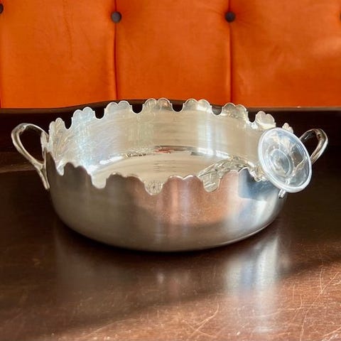 Til salg står en ikonisk champagnekøler fra mærket Dom Pérignon. Dette model blev oprindeligt udelukkende produceret til finere gastronomi og eksklusive arrangementer og var aldrig tilgængelig i fri handel - en ægte sjældenhed for enhver bar eller samling.