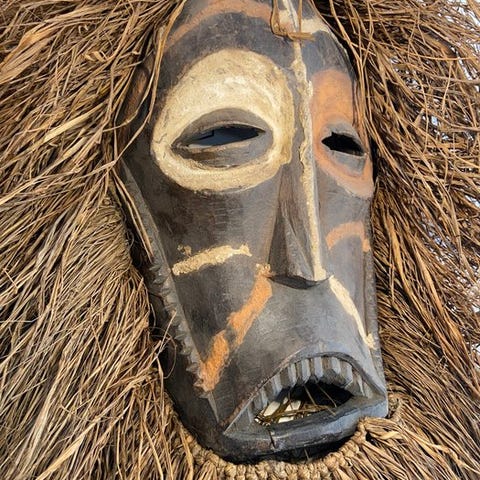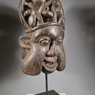 Træmaske fra Tanzania af Ngonde-folket, 60 cm høj, i god stand, provenance: Colección privada. Klik på den blå "gå til varen" knap, for at købe eller byde på denne vare. Den samlede pris vil blive vist inden du afgiver dit bud.