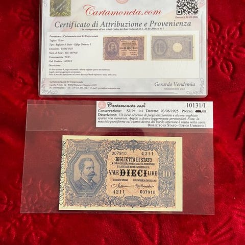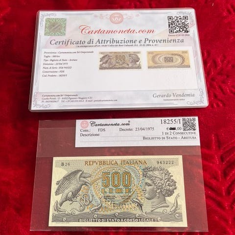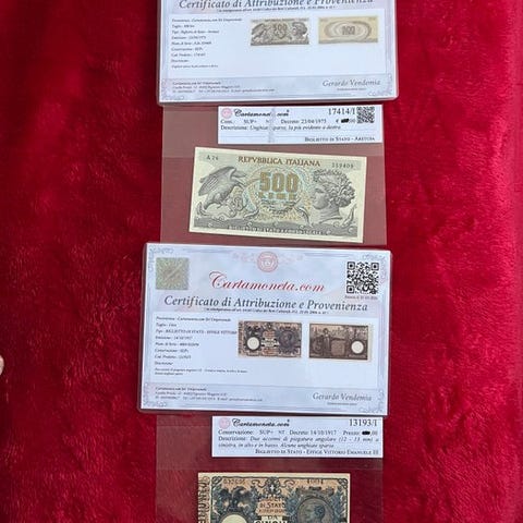 Statsseddel på 100 lire "Italia Elmata" udstedt den 31/12/1951 i Specimen-udgaven (serie 0000 000000) er et eksemplar af særligt stor numismatisk sjældenhed, ofte klassificeret som R5.