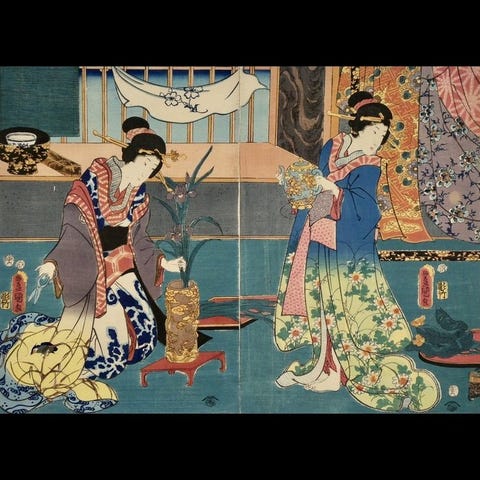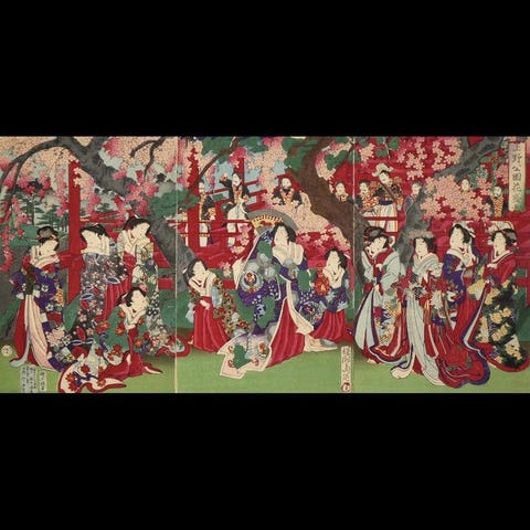 Originalt japansk farvet træsnit på Washi-papir. Højkvalitetstryk, formodentlig fra Adachi eller en tilsvarende mesterproduktion.