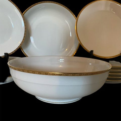 Set af 6 firkantede dybe suppe-tallerkener i porcelæn fra Limoges Raynaud & Cie