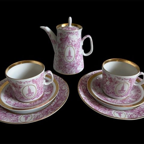Te-servesæt med bakke og desserttallerkener, model "Fou-Tchéou" fra Bernardaud & Cie. Limoges.