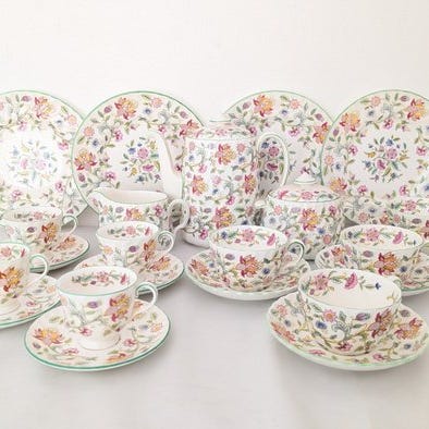 til salg står et charmerende sæt fra den populære serie „Summerday“ fra den anerkendte manufaktur Villeroy & Boch. Servicen af høj kvalitet i Vitro-porcelæn fascinerer med sit farverige, sommerlige blomsterdekoration og den klassiske formgivning, der giver tidløs elegance ved bordet.