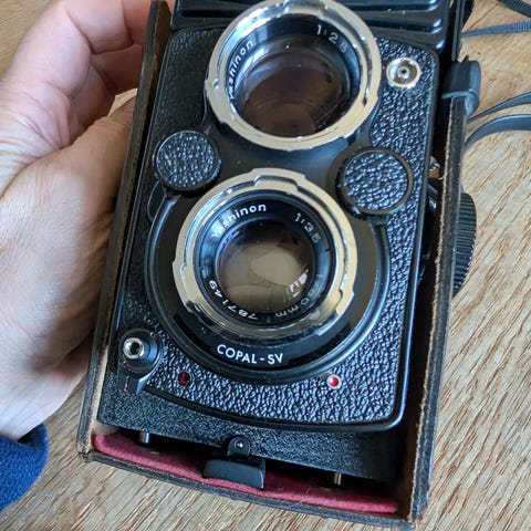 Til salg står en særdeles velholdt Yashica-635, en toøjet spejlreflekskamera (TLR) fremstillet i Japan. Dette model stammer fra den eftertragtede sene produktionsserie (serienummer SX0010571, ca. slutningen af 1960’erne), som er kendt for sin gennemarbejdede mekanik.
