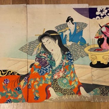 Kakemono-e vertikal diptych – en sjælden og spektakulær storformat træsnit i bloktryk